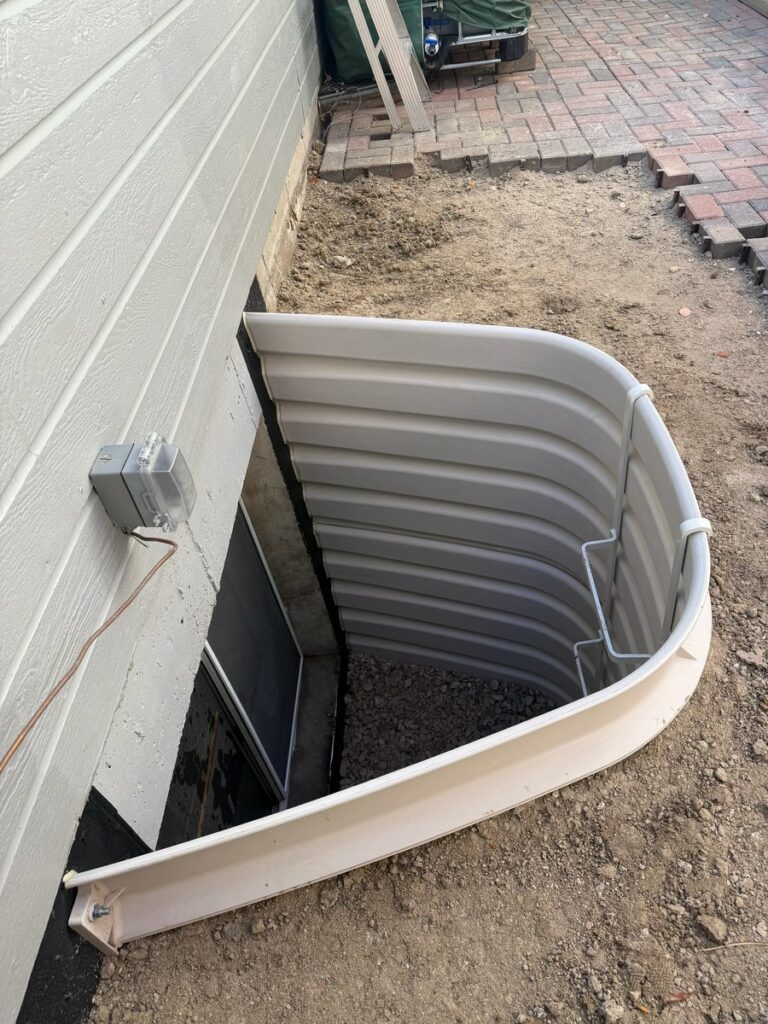 Transform your basement with Denver Egress Window! In Highlands Ranch, we upgraded a cramped 30×16” slider to a spacious 48×48” Pella vinyl slider featuring a Low-E energy-efficient glass package, flooding the space with natural light and boosting energy savings. To combat flooding, we installed a dry well with crushed gravel for superior drainage. We also excavated around the foundation to install a durable 66×42″ tan RockWell fiberglass window well—rustproof, low-maintenance, and built to last! Backed by our 5-year labor warranty, this project was structurally engineered and wet-stamp approved for peace of mind. All dirt and debris were hauled away, with exterior work completed in just two days and interior work wrapped up in one. Elevate your Highlands Ranch home with Denver Egress Window’s expert craftsmanship!